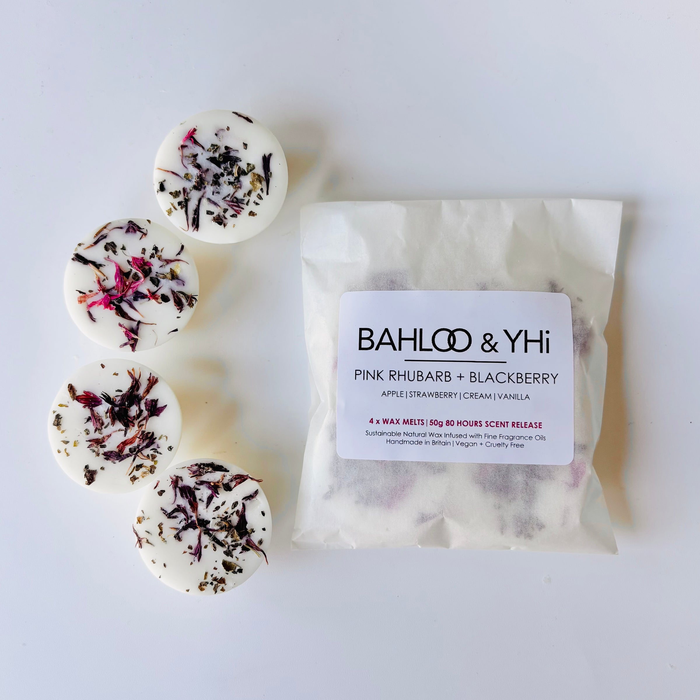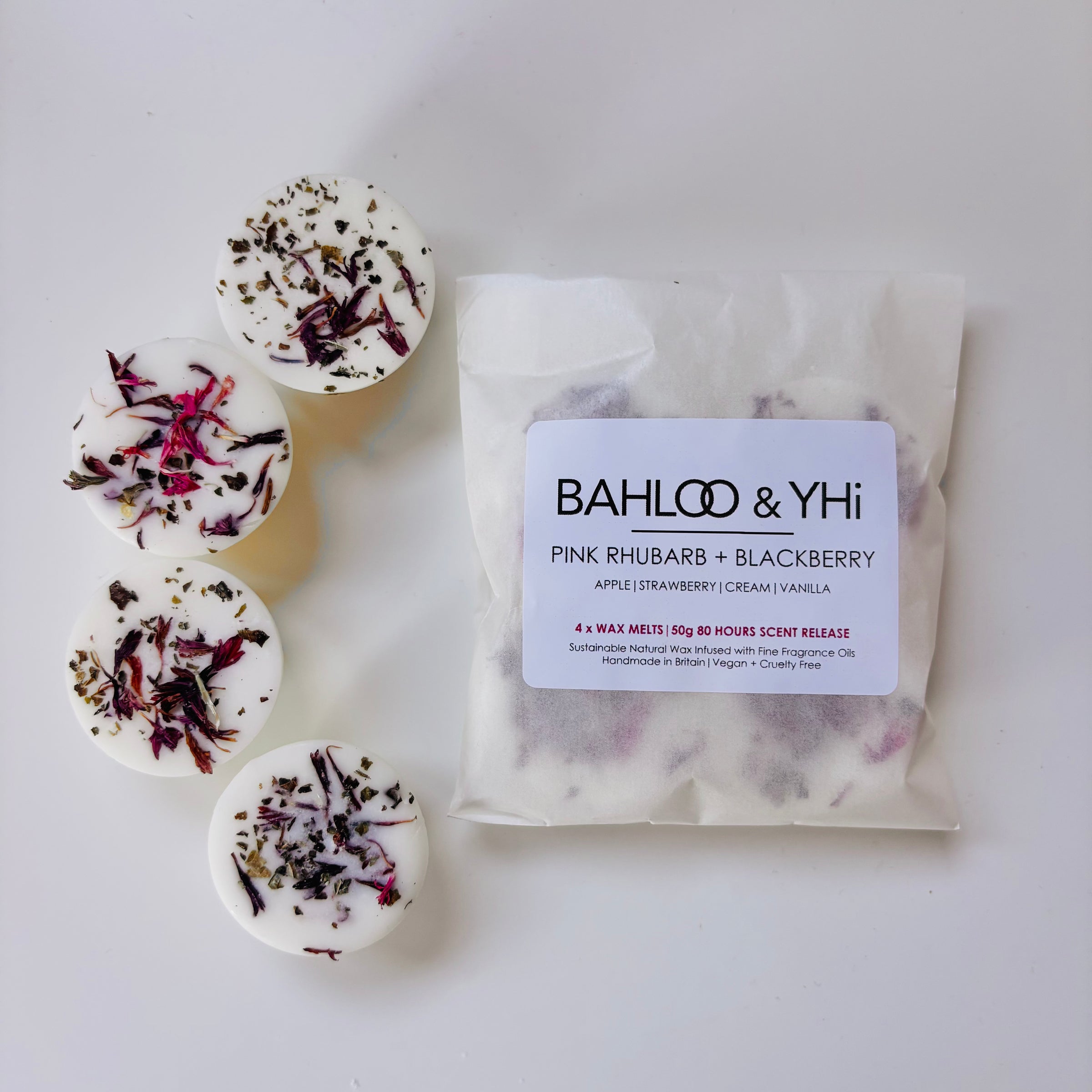 A sweet and fruity fragrance delight of custard, vanilla, cream, red berries and pink rhubarb. Pink Rhubarb + Blackberry is good for strong scent lovers!